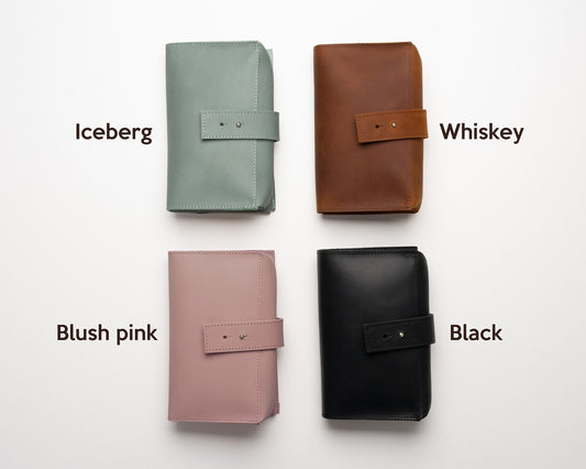 Gepersonaliseerde paspoorthouder van Crazy Horse-leer, ideaal als reisgeschenk.